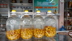 Bước 8: Cuối cùng thì đem bình ngâm rượu vào chỗ thoáng mát khô ráo (tốt hơn hết là vừa mát và vừa tối, nếu được thì lấy giấy báo bọc quanh bình rượu cho chắc ăn) và chờ đợi thôi. Khoảng 6 tháng là rượu mơ có thể uống được rồi, nhưng ngon nhất là khoảng ngâm từ 1 năm trở lên. Tuy nhiên nếu rượu ngâm sau 1 năm thì các bạn nhớ lấy hết trái mơ trong bình ra vì từ lúc đó là mơ đã tiết hết chất ngọt và cũng bắt đầu thối rửa nên để luôn trong bình thì cũng không an toàn và vệ sinh lắm.